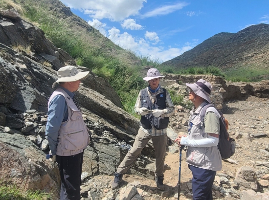 郭敬辉研究员一行重点考察了古元古代晚期色尔腾山岩群变质火山-沉积岩系,以及变质辉长岩-二长闪长岩-斑状石英二长片麻岩-奥长花岗岩-英云闪长岩等组成的侵入岩系。双方就野外产状、原岩性质以及岩石成因等方面进行了深入讨论,进一步明确了该套火山-侵入岩系的弧岩浆岩成因属性,为恢复华北克拉通北缘古元古代碰撞造山带结构及俯冲极性提供了关键地质约束。